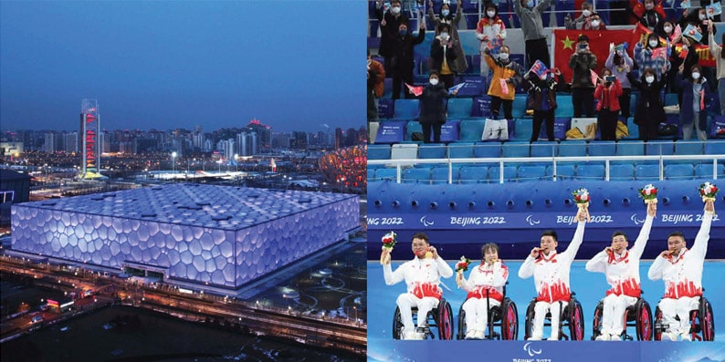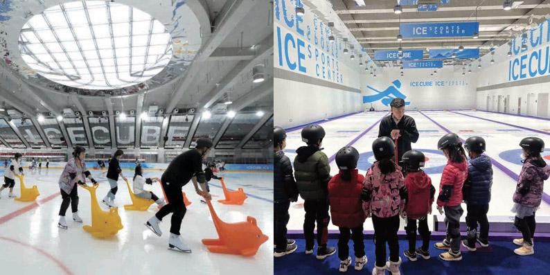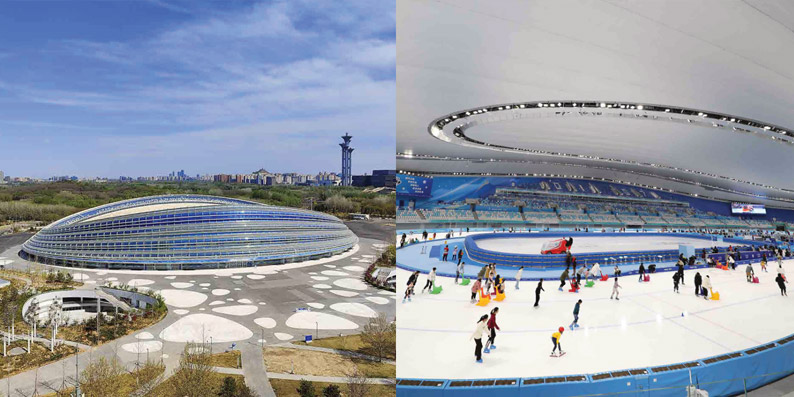 “水立方”华丽变身“冰立方”,成为冰壶和轮椅冰壶的赛场,也是冬奥赛事单元最多、比赛赛程最长、单日运行时间最久的冰上场馆。冰上运动中心新建了4条冰壶赛道和标准冰场,是全民健身、冬季运动、冰上娱乐的重要活动场所。