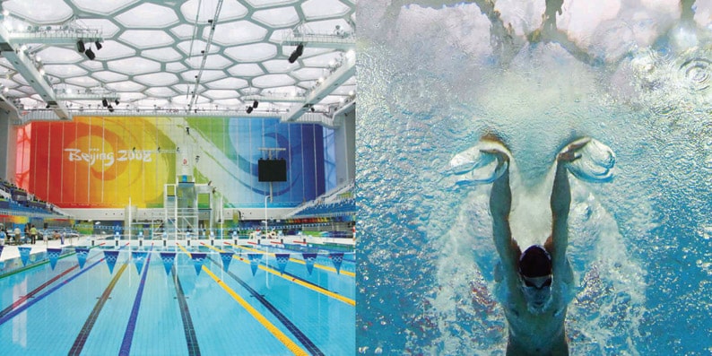 国家游泳中心2008年夏奥会作为游泳、跳水、花样游泳的赛场,被誉为“最快”的泳池赛道。此外,国家游泳中心的建筑外立面由特色的蓝色ETFE膜结构,也被人民群众和广大媒体亲切地称为“水立方”。