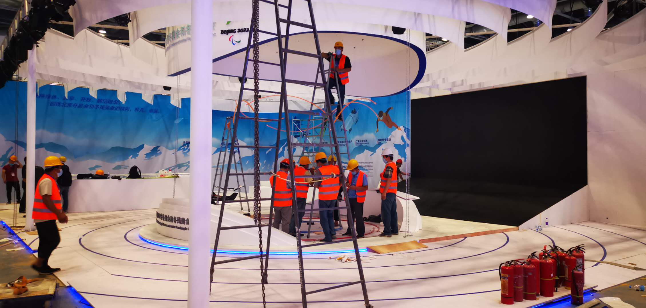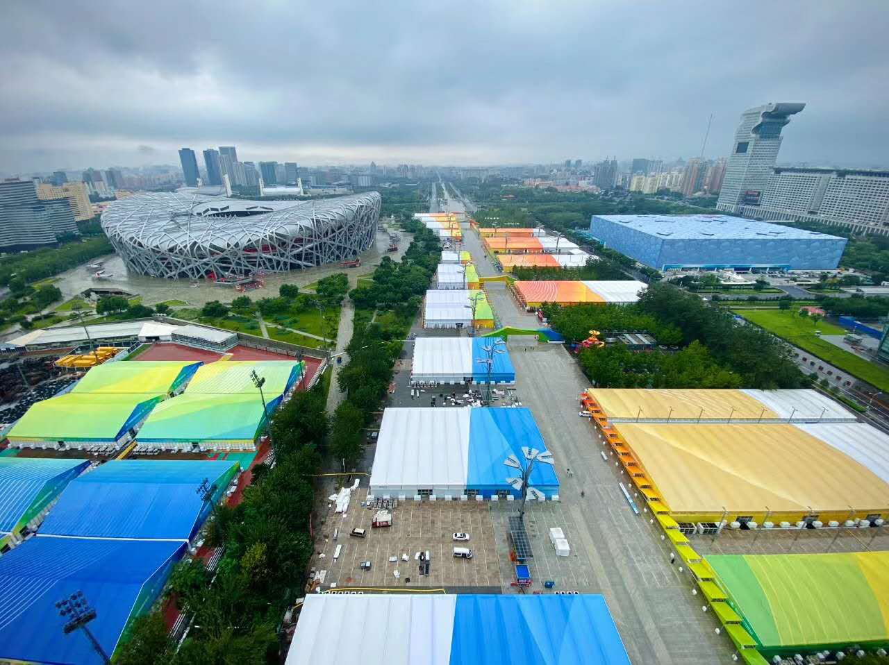 目前,在国家体育场和国家游泳中心的全力保障和配合下,篷房搭建工程已全部按期竣工,电力设施架设和改造工作均已按期完成,完全具备通电条件。