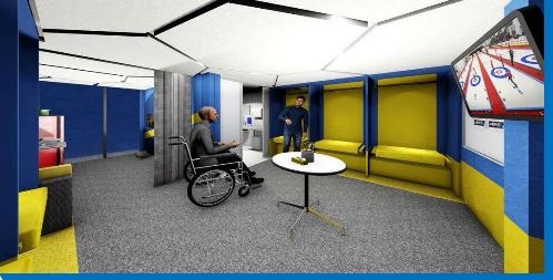 ↑集装箱式更衣间会议区效果图。国家游泳中心供图