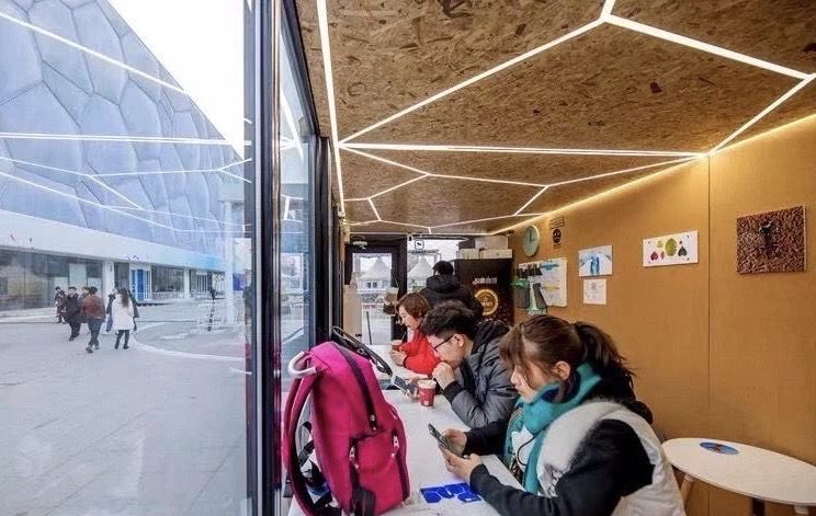 ↑集装箱自助咖啡厅。国家游泳中心供图