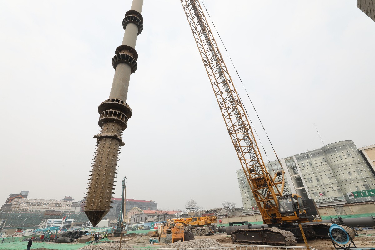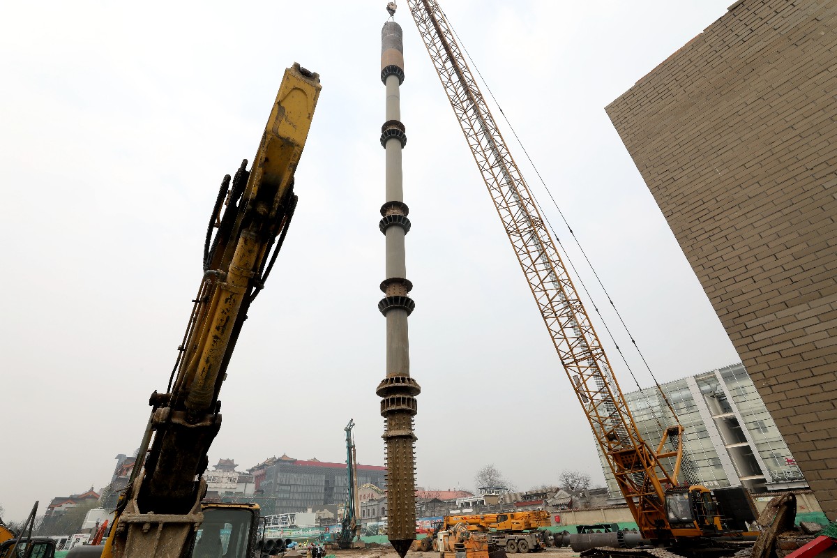 这就相当于盖房先盖房顶,最后做地基。在7000余平方米的范围内,先在地下打入92根钢管柱搭起骨架,然后开挖2米左右做地下空间顶板,待顶板结构稳定,再依次开挖地下一二三四层。每根钢管柱直径达80厘米,有24米高。据介绍,预计6月中下旬桩基工程可以全部完工。而整个织补项目将于2022年底建成。未来,地下空间将与东四地铁站实现连通。