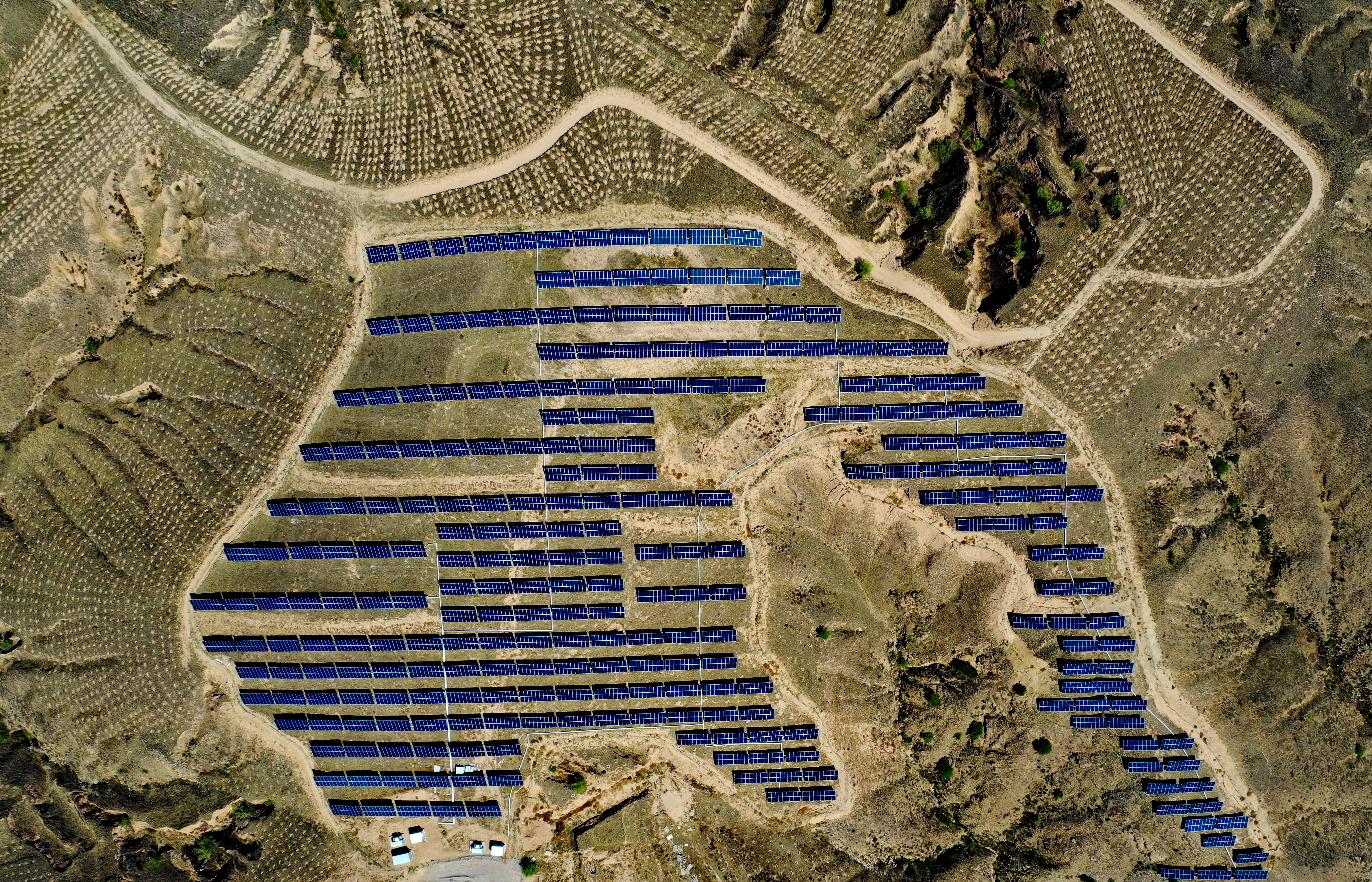 张家口市怀安县西沙城乡西沙城村附近荒山上的光伏发电场。新华社记者杨世尧摄