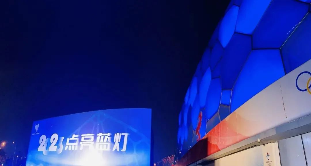 国家游泳中心第十三次为“星星的孩子”点亮蓝灯