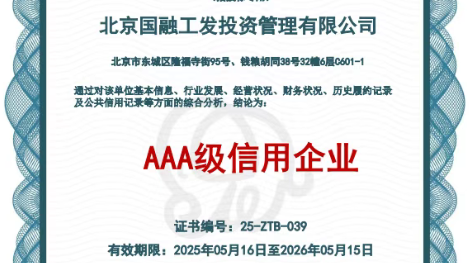 国融工发再获“AAA级信用企业”称号