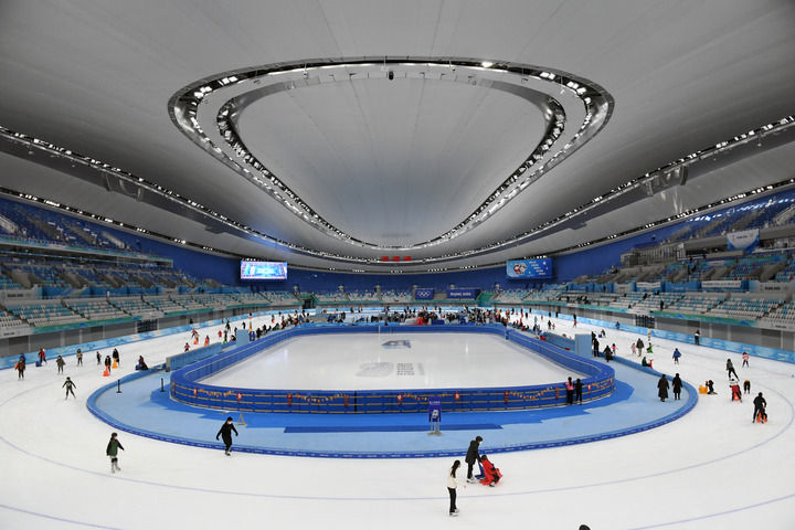 1月22日是农历正月初一,人们来到国家速滑馆“冰丝带”滑冰,乐享新春假期。