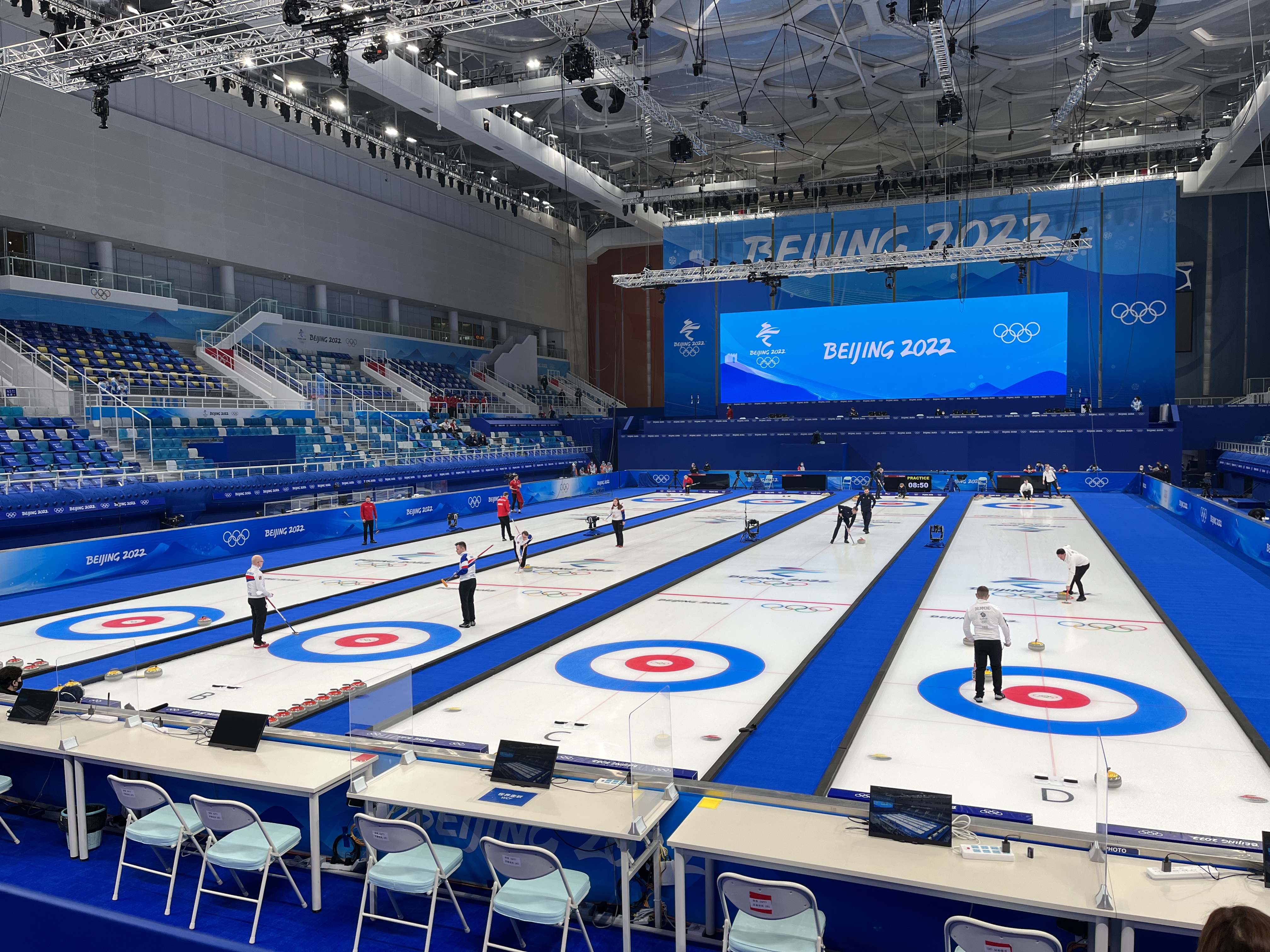 2月2日晚,北京冬奥会首场比赛在国家游泳中心“冰立方”率先打响。在冰壶混双循环赛中,中国组合范苏圆/...