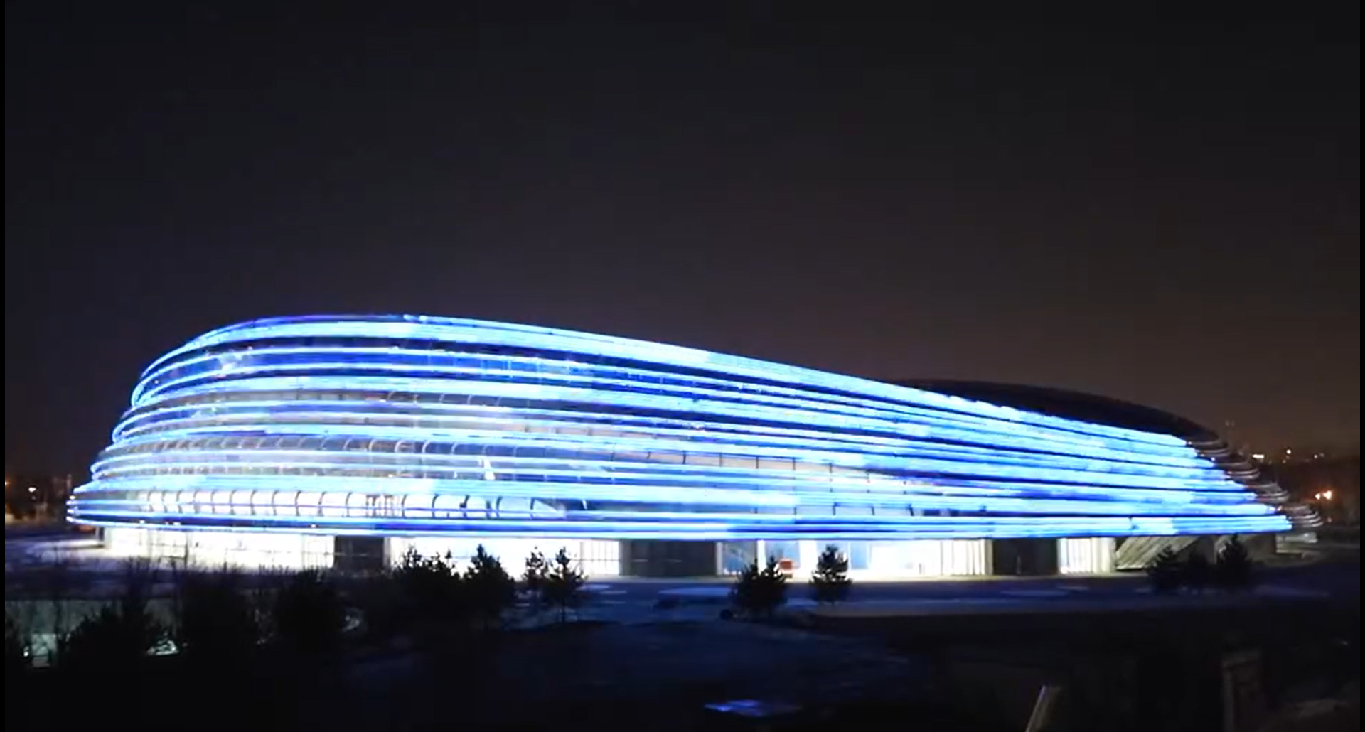 北京冬奥会标志性场馆国家速滑馆“冰丝带”亮了